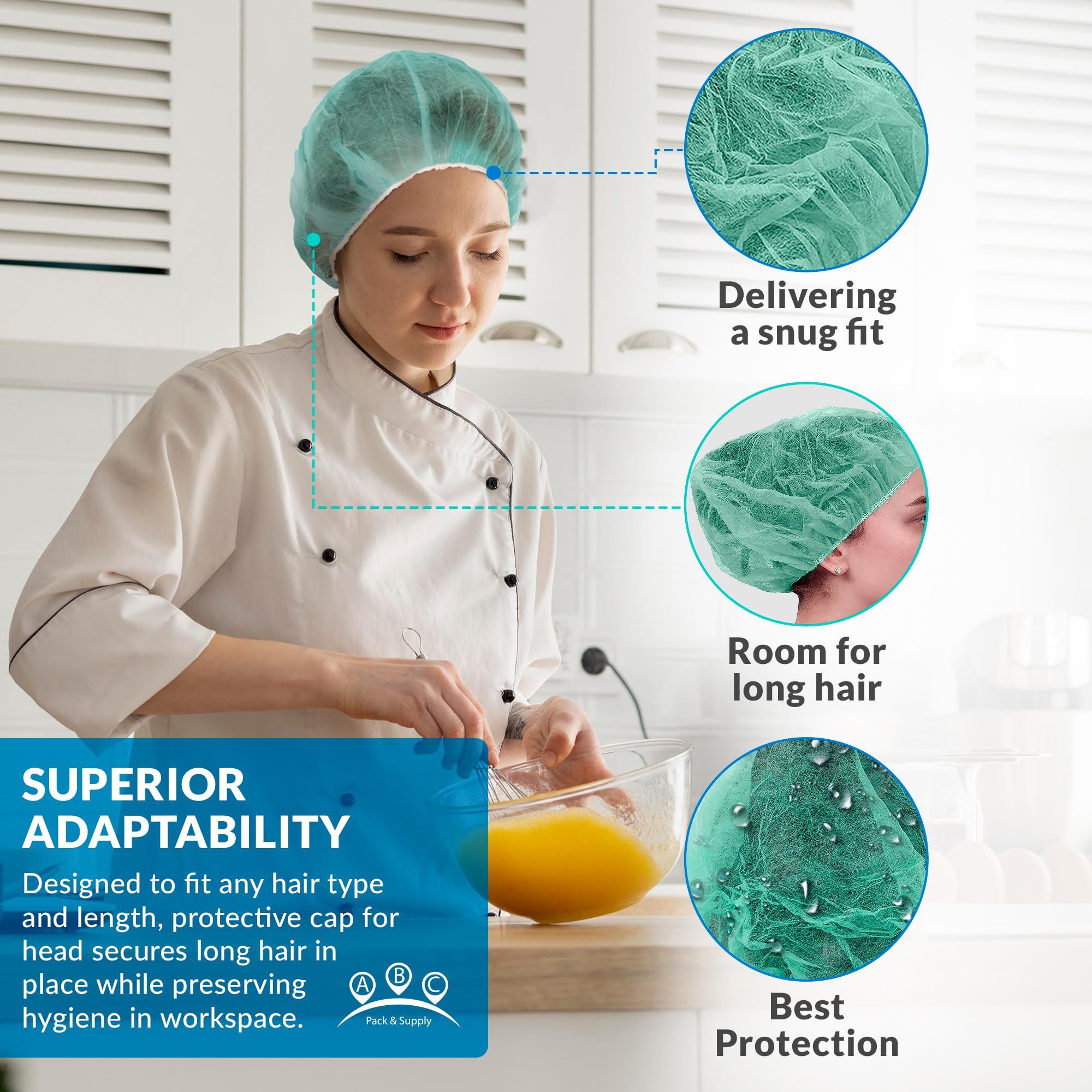 1.100 Pack of Disposable Hair Nets 24 inch. Chef hair nets are meticulously crafted from high-quality polypropylene. Kitchen hair nets are easy to put on and take off, delivering a snug fit that's comfortable for all-day use without compromising on professional appeal.